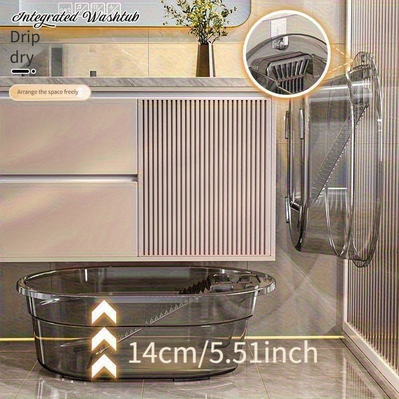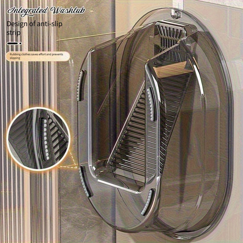 1-Pack Transparent Integrated Laundry Basket with Scrub Board